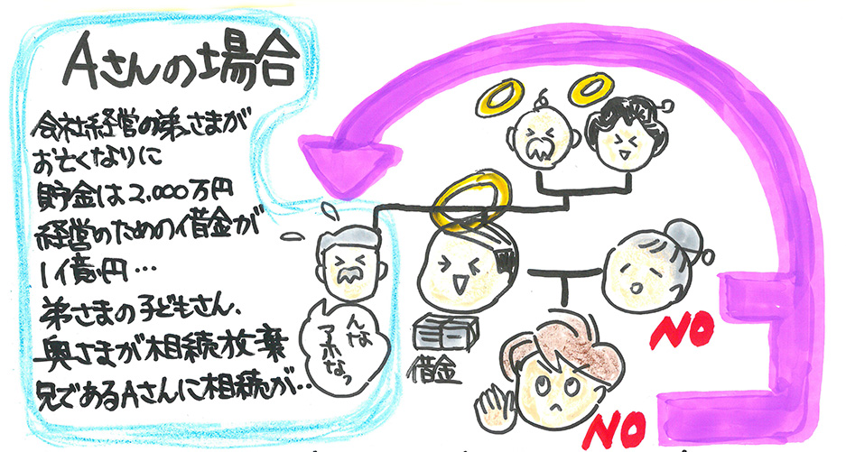 仮に相続人である弟さまの子どもさんや奥さまが相続放棄をすると、兄であるAさんに相続人としての地位(いわゆる貯金と借金など)が移動します。