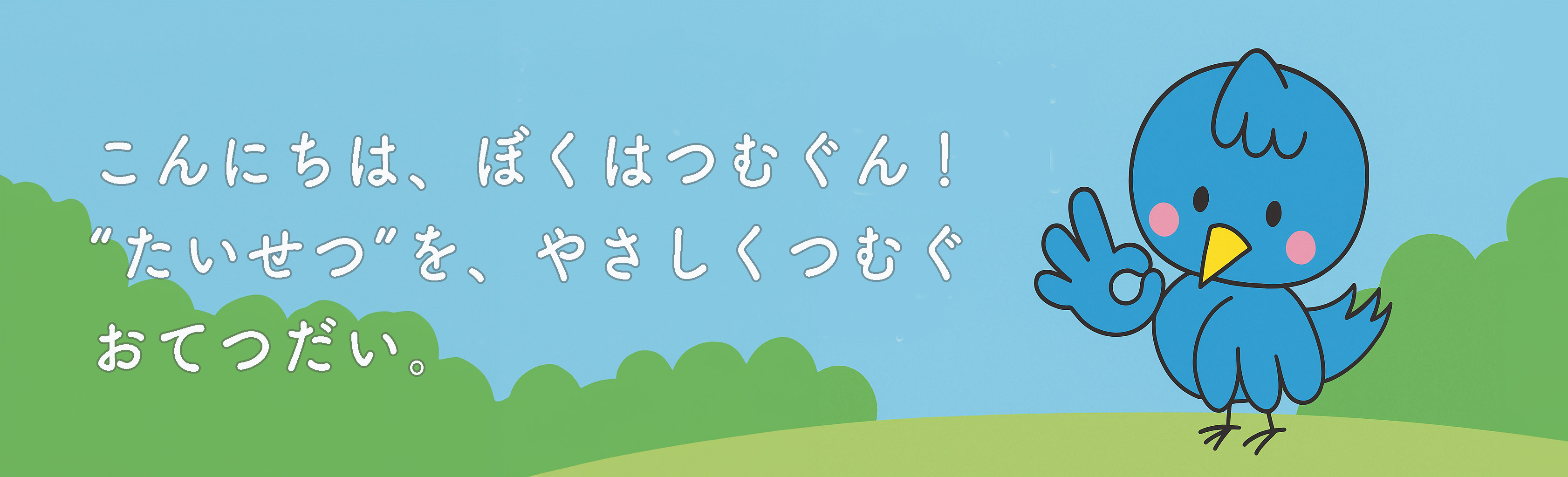 A: 「たいせつ」を運ぶ“つむぐ鳥”という不思議な青い鳥だよ!