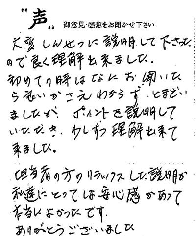 大変しんせつに説明して下さったので良く理解出来ました。